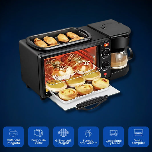 Aparat pentru Micul dejun perfect: Cuptor, Grill si Filtru Cafea, MorningStation