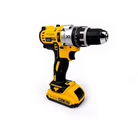 Masina de Gaurit si Insurubat (bormasina) DEMAHO®, Autofiletanta cu Percutie, 36V, 8.0 Ah, 500W, 2 Acumulatori Li-Ion, 30 Accesorii, Statie de Incarcare, Valiza de Transport, Design Galben/Negru